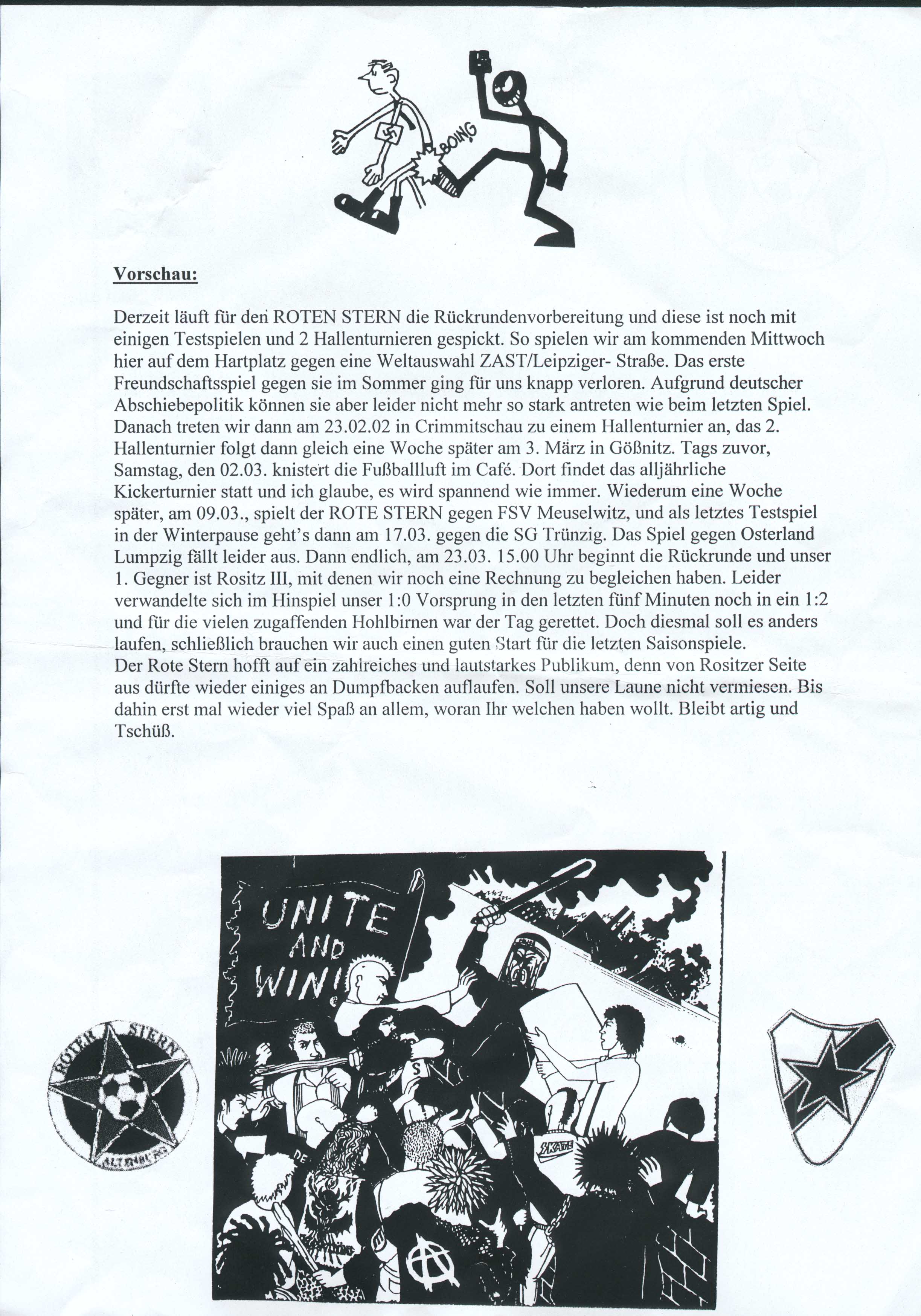 Blitzausgabe zum Spiel gegen Roter Stern Leipzig II am 10.2.2002 (0:5)