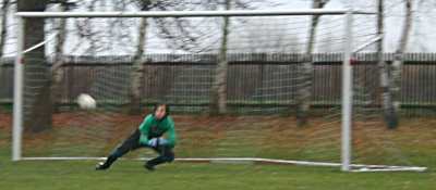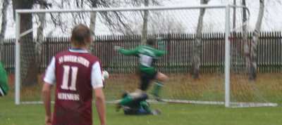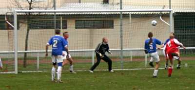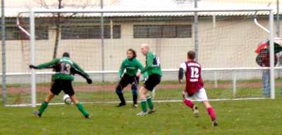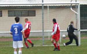 Zabel (hier 74. Minute) und die Abwehr hielten den Kasten sauber. Das Spiel war sehr spannend und ließ die Zuschauer das schlechte Wetter ertragen. Der Schiedsrichter ließ noch etwas zwei Minuten nachspielen. Es blieb beim 1:2.