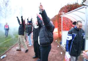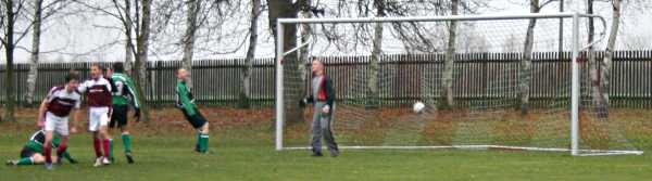Bevor die erste Mannschaft antrat, um die lange Serie siegloser Spiele zu beenden, war die zweite dran. Bis zur Pause hatte es 0:0 gestanden. Danach schossen die Gastegeber Tore. Das 1:0 fiel kurz nach dem Wiederanpfiff. In der 66. Minute trafen sie erneut, was auf diesem Bild zu sehen ist.
