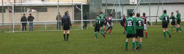Nach einer Ecke in der letzten Minute vor der Pause trafen die Gastgeber doch noch. Der Unparteiische ließ dann noch ca. eine Sekunde spielen, bevor es in die Kabinen ging.
