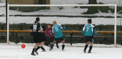 Unter diesen Bedingungen kam die Zweite bsonders gut zurecht. Im letzten Drittel der ersten Halbzeit erzielte Kese mit einen schönen Heber das 3:0. Zuvor hatten Moppel und Döhler getroffen.