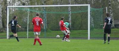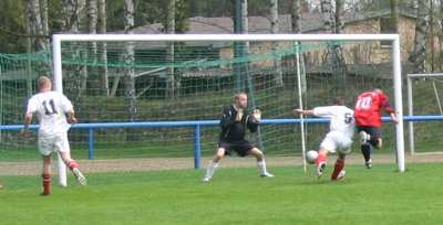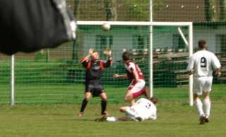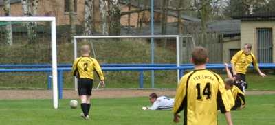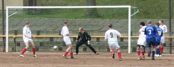 In der zweiten Halbzeit verbesserten sich die Gastgeber und in der 81. Minute erzielte Moppel mit einem wunderschönen Tor den Anschlusstreffer. Ein langer Ball von der linken Seite landete im Tor und der Mann im Kasten konnte nur noch hinterherschauen. Leider lassen sich solche "Fäden" wegen der langen Flugbahn des Leders nur schlecht fotografieren.
