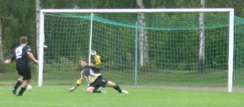 Das Spiel der Ersten begann angenehm. Nicht nur das Wetter war schön, auch das, was die Spieler vorn veranstalteten, gefiel. Leider haperte es in der ersten Halbzeit wieder an der Chancenverwertung. In der 39. Minute verzog z.B. Schulle kurz vor dem Tor. Die Gäste trafen bei Kontern auf gelegentliche Abwehrschwächen, konnten diese aber nicht nutzen. So blieb es zur Pause 0:0.