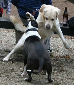 Danach wurde das Spiel ruhig. Es gab Gelegenheit, die Kulisse zu fotografieren. Das rechte Bild macht die Entstehung der Redensart "Ein Ohr abkauen" verstehbar. Es wurde auch wieder eine Fellschlange (Bild unten) beobachtet, dieses mal eine schwarze.