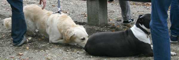 Wie das untere Bild zeigt, wurden wahrscheinlich einige Redewendungen der Menschen durch die Beobachtung von Hunden inspiriert. Hier geht es um das Kriechen in den Allerwertesten.