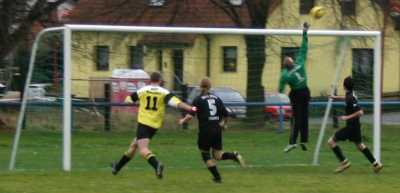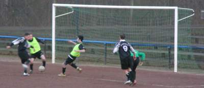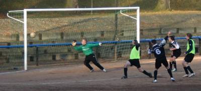 Jedoch bekam auch Dennis Arbeit. Erschwerend für die Torhüter war der holprige Boden. Zudem war das Leder durch Nieselregen glatt und war schwer zu fassen.