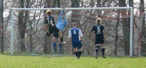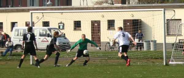 In der Folgezeit stand die Abwehr gut, doch brenzlige Situationen gab es weiterhin. Die nächsten drei Bilder zeigen eine Dreifachchance in der 75. Minute. Dennis zeigte hier eine Glanzleistung.