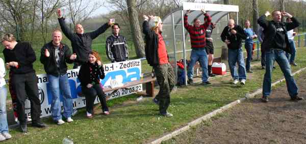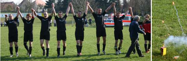 Die Fans hatten Grund zum Jubeln. Zur zweiten Halbzeit waren sie durch Spieler der Zweiten verstärkt worden, die zuvor mit einer Notmannschaft 0:0 gegen prößdorf gespielt hatte.