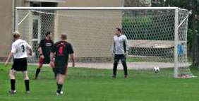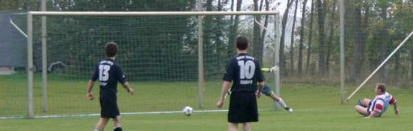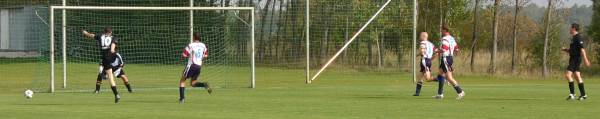 An diesem Spieltag fotografierten Valko in Windischleuba und Frank in Löbichau. Deshalb gibt es Bilder von den Toren beider Spiele. Zudem lieferte Spielerkorrespondent Torsten Rist noch einen Textbericht. Das Spiel Spiel der Zweiten in Windischleuba nahm einen anderen Verlauf. Roter Stern war nur mit zehn Spielern angetreten, trotzdem gingen zunächst die Altenburger in Führung. Marcel "Locke" Enke - hier im Bild - traf mit einem Fernschuss in der 21. Minute. |