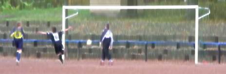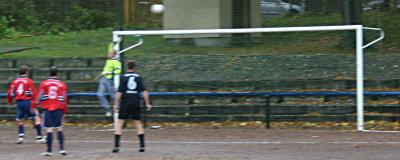 In der 87. Minute fiel das 4:0. Die Kugel schien zunächst auf dem Weg zu sein, das Tor in großer Höhe zu überqueren, senkte sich jedoch kurz vor dem Kasten. Bewegungsunschärfen zeigen, dass die zunehmende Dunkelheit lange Belichtungszeiten erforderte. |