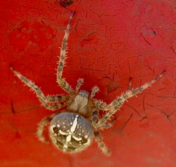 An einem sommerheißen Sonnabend war die Begegnung zur mittagsschlafenen Zeit von 13 Uhr angesetzt. Ein Prachtexemplar von Kreuzspinne suchte Schatten unter dem Geländer.